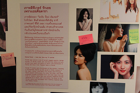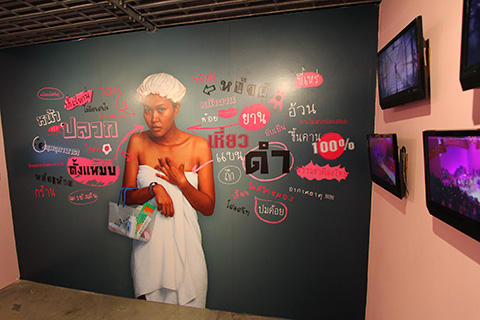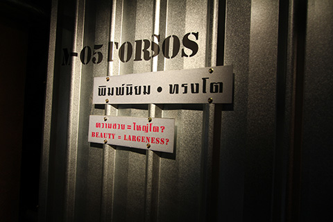 かと思えば一階のブースでは”美しくなりたい”けどあまり成功していない女性を揶揄するような展示や、首長族の女性の写真、クメール時代の彫刻の写真などが展示されていた。