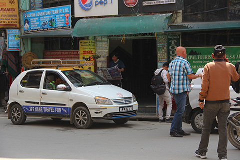 | 4/13 | 空港 - タメル | タクシー | 500NPR | 30m | ちょうどやって来たタクシー |