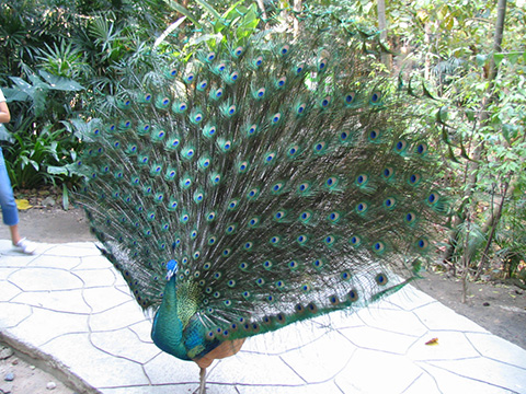 鳥類の展示館は20m以上の高さまで金網を延ばしたその中に見学者が自由に入れるようにしており、真っ赤なインコなどの鳥が自由に飛び回っていてクジャクもさわれるような位置できれいな翼を広げている。
