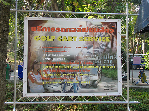 ゴルフカートが園内の足として250THBで貸し出されている。