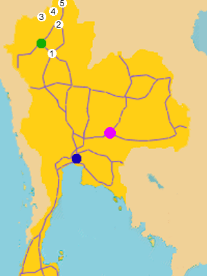 青: バンコク 緑:チェンマイ 紫:コラート