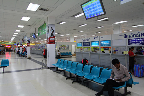 フアヒン、チャアム、サムイ、プーケットなどおもに南方面のバスが発着するこのターミナルは3階がチケット売場になっていて、新しいのかどうかよくわからないくすんだ館内は田舎のショッピングセンターのように小さな商店がびっしり詰まっていた。