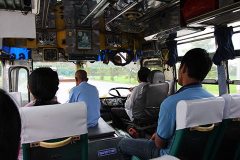 列車は駅ごとに物売りが乗り込んできたりするけどバスは珍しいと思っていたら「サトウキビジュース、1本10THB」と運ちゃんが売り込みの声を出していた。