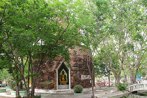 サルナートにあったような円柱形の仏塔が木々に囲まれて建っていた。
