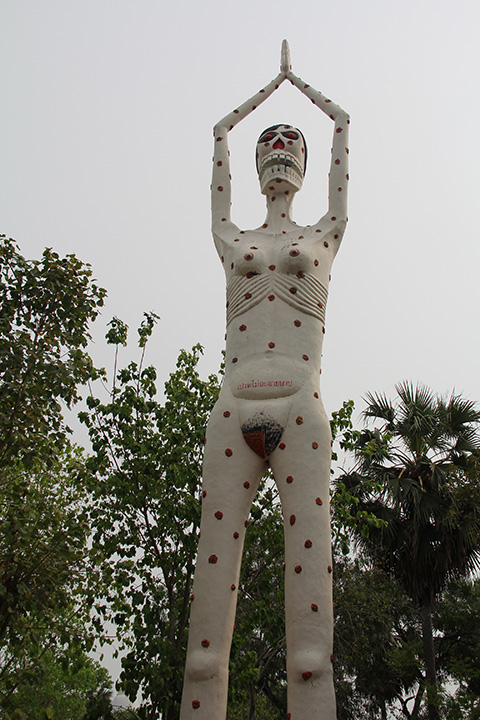 15m位ありそうな男女の像は局部が病気にかかっていることを表すかのような色使いだし、実際女性像は発疹らしき赤い点々が全身に描かれている。