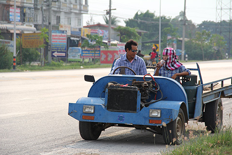 しかしこの道路、サーラーもあるしタイ人客も待っているからたぶんバスは走っているんだろうが、バスはおろかロットゥーすらも通りかからない。