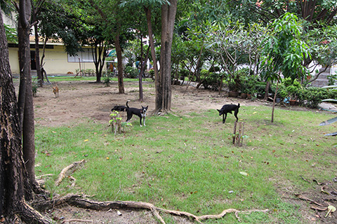 しかしそのウィハーン(?)の写真を撮ろうと近づいていくと手前でゴロゴロしていた犬たちが急に元気になり、縄張りを主張するのか激しく吠えながら7,8匹が周りを取り囲んできた。