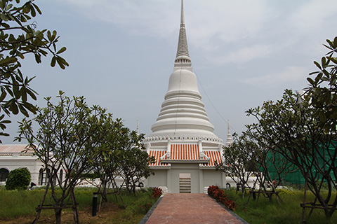 その先に出ていた案内標識に従って進むとワット・プラサムットチェディはすぐに現れた。