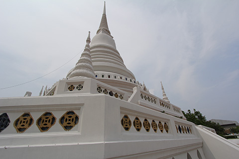 これはこれで綺麗ではあるものの、王室寺院であるワットプラゲーオのプラ・シー・ラタナ・チェディーやタイ最大のチェディであるナコンパトムの金色に輝くチェディに比べるとインパクトは低い=タイ人的にはありがたみも低いかもしれないな。