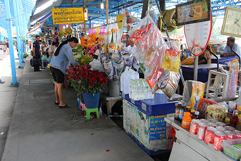 しかしパークナム側のタラートとは違い、こちらでは軽食や土産物が主で地元民よりも観光客向けの色合いが濃い。