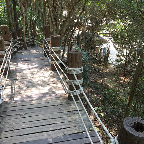 敷地内には食堂やらボートトリップの看板やらが立っていたがそのまま進んでいくと海辺に建てられた建築物の正面に出た。