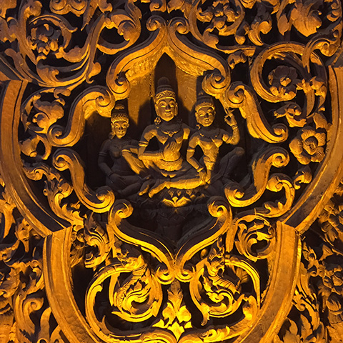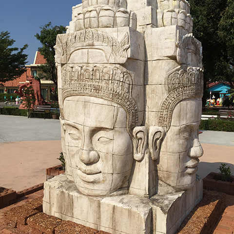 純粋な仏教建築というよりはヒンドゥーやアンコール文化も混じっているような気がする。