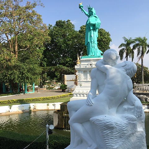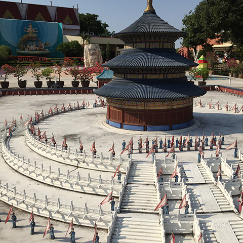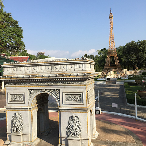 ゲートをくぐり先に進むとドラえもんやら凱旋門+エッフェル塔、アンコールワットに自由の女神などが並んでいて、いったいこれのどこがSiamなのかと思っていると、後半はタイの有名地のミニチュアが続いていた。