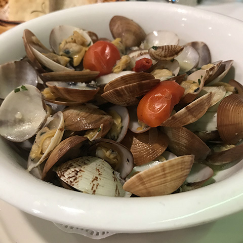 ミックスサラダとブルゲッタ、それにヴォンゴレ(と言っていたけど要はアサリの白ワイン蒸し)を注文。