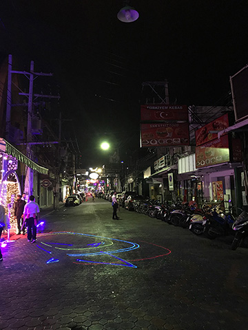 一昨日の晩もそうだったけどウォーキングストリートであるはずなのに車が入って来る。