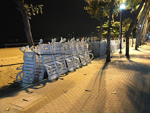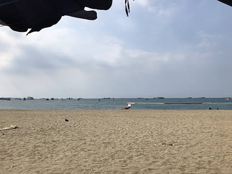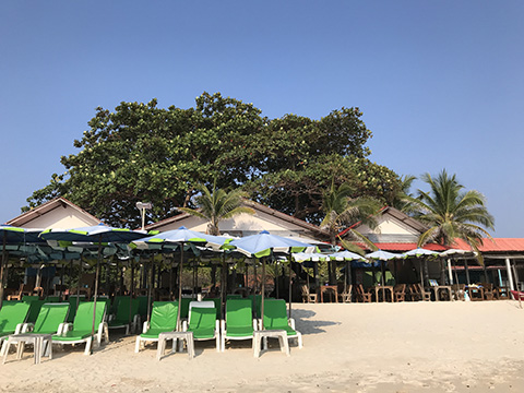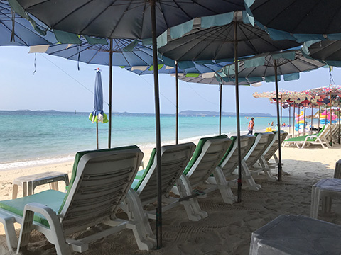 チェックイン後にビーチロードに出てみるとやはりビーチもガラガラでパラソルの下にもほとんど客がいない。