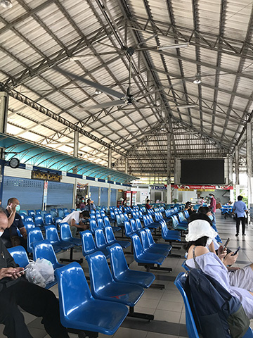 そのすぐ横にいた物売りのおばさんにどこに行くのか尋ねられ「ゴ・ラーン」と応えると「ここはフアヒン行きだから」と別な建物の方を教えられた。