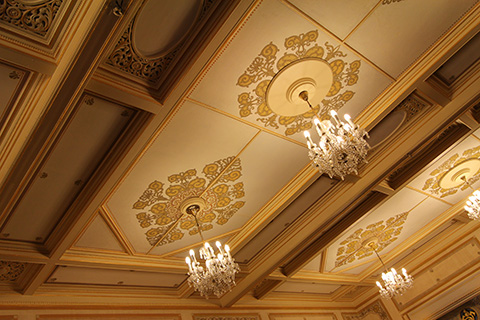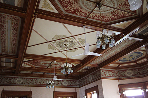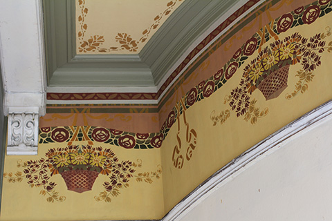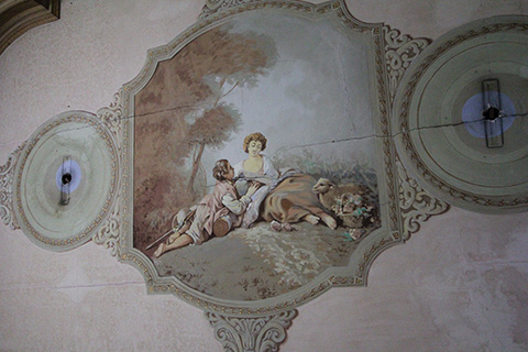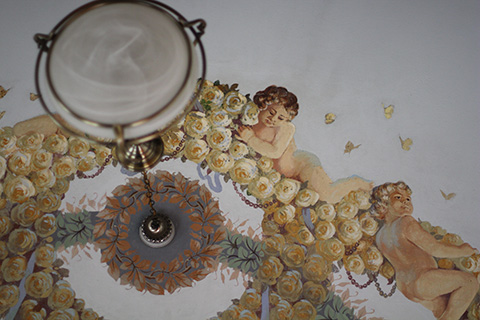 照明の取り外された天井には西洋風の絵が描かれていた。