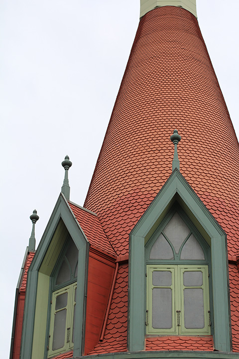 赤い円錐状の尖塔をもつこの建物はピマーンチャックリーホールと呼ばれロマネスク様式とゴティック様式のコンビネーションらしい。