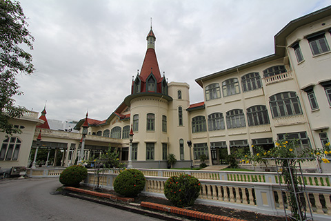 タイ語の説明は難しくて何を言っているかさっぱりわからなかったので受け付けで手に取ったパンフレット(タイ語・英語併記)を読んでみると、ここはチュラロンコーン大王の休息と農業経験のために建てられ、その後にラマ6世の住居、ホテル、病院と移り変わってきたとのこと。