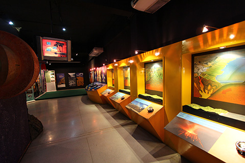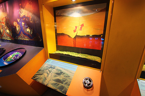 最初の展示物は地震発生のメカニズムや火山の様子などの解説を模型とパネルで解説していた。
