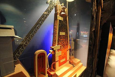 さらに世界の海溝を示した図、鉱物資源採掘のディオラマや溶鉱炉の模型、掘り出された鉱石のサンプルなどが続く。