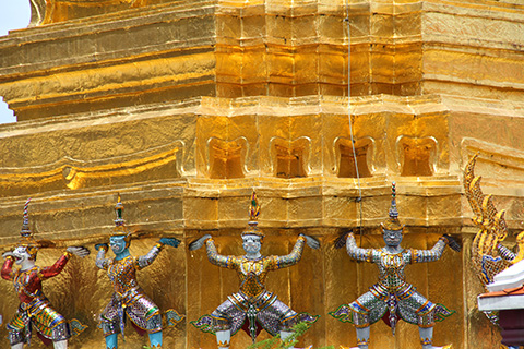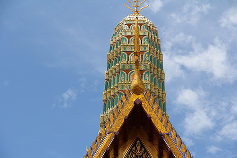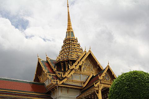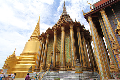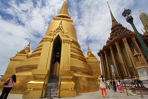 目を引くのはエメラルド仏の置かれている本堂より、左手の金色のプラ・シー・ラタナ・チェディー。