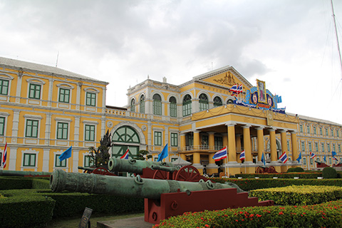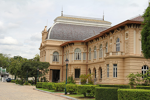 ここは未だにレセプションホールとして使われている宮殿で、大理石3階建ての豪壮な館にタイ風のきらびやかな屋根が乗っているのが興味深い。