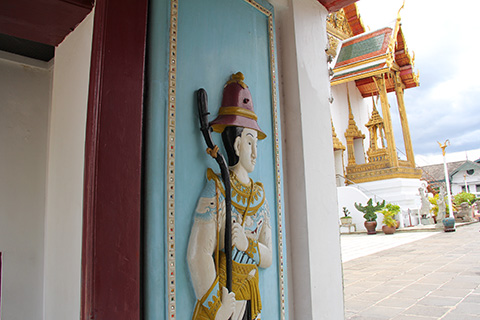 なのでラングナムでタクシーに「ワット・プラゲーオ」と告げて乗り込んだものの、パヤタイ通りとシーアユタヤ通りがいつものようにひどい渋滞で空いていればたぶん15分くらいの距離に30分ほどかかってやっとワット・プラゲーオに到着した。