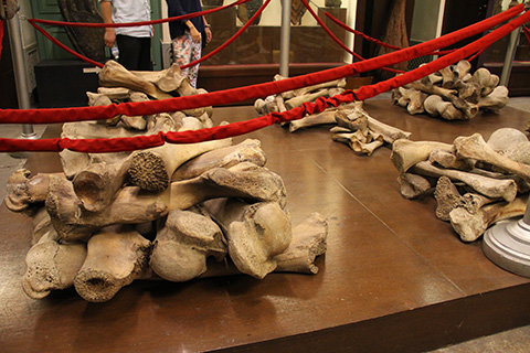1階にはワットプラゲーオの修復時に交換されたと思われる屋根や柱の一部、それに象の骨などが展示されていた。