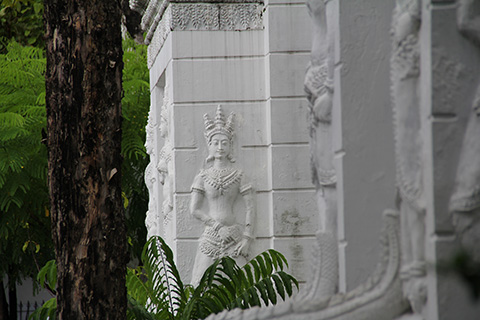 残念ながら正面の右側も左側もガルーダ像の改修工事かなにかで全体像をクリアに眺めることはできなかった。