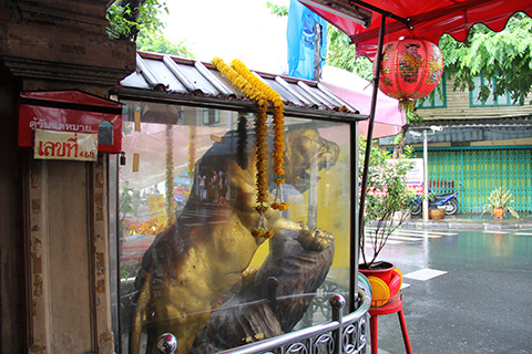 そのプレーンプートンはサオチンチャー(大ブランコ)に向かう通りと交わるロータリーを過ぎた次のソイでそこにはマラッカのような漆喰作りの古い長屋が続いていた。