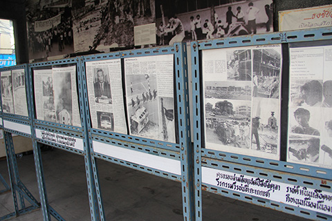 古い写真や新聞記事が展示されているが、軍との衝突、傷ついた学生など、事件の背景は違うもののこれが一昨年の赤シャツの時だとしてもあまり違和感のない写真だ。