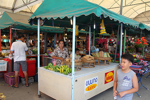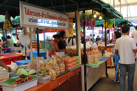 そしてそこにあるのはおなじみのタイ式ジャンクフード、小物、お土産用お菓子、クイティアオ屋などなど。