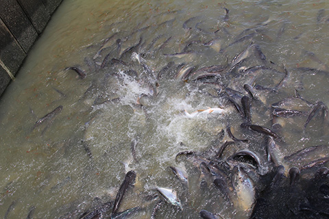 川沿いまで出れば何かあるかと進んでみると水の上に浮かべた艀からタイ人客が川のナマズに餌を与えてタンブンしていた。