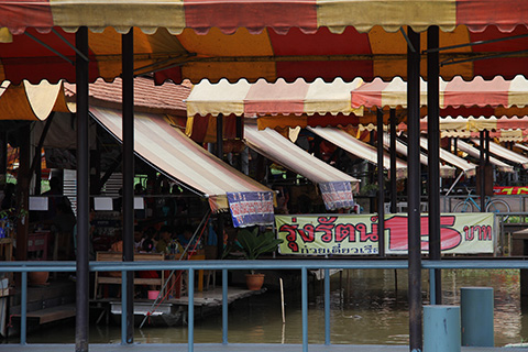 今週末はどうしようかと金曜の晩に焼酎のグラスを片手にネットをさまよっていると、そういえば以前パトゥムタニ県にあるタラート・ラヘーンへ出かけた際に赤シャツによって道路を封鎖されたため、いけずじまいだったタラートリムナーム・ワット・サーンチャオがあったことを思い出した。