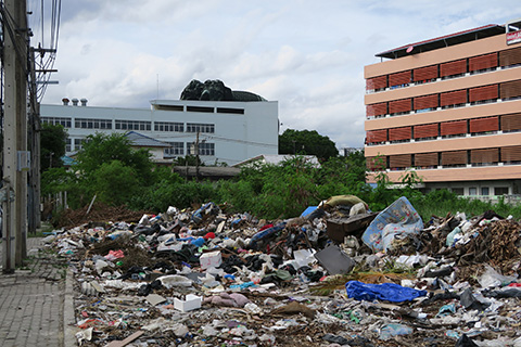 スクンビット通りを市内方面に少々戻ると道路わきにゴミ捨て場が現れて来た。