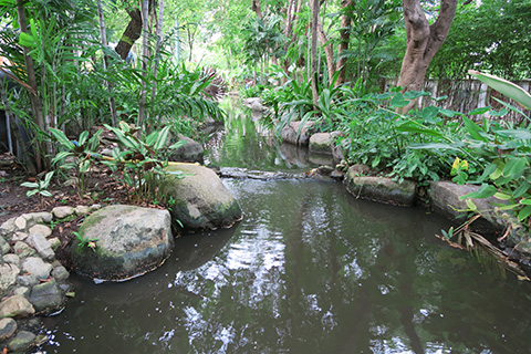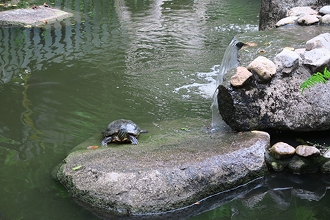 そして水辺にはたいていいる水の神・プラ・メートラニーが置かれ、池では甲羅長20cm近くありそうな巨大な亀が甲羅干しをしていた。