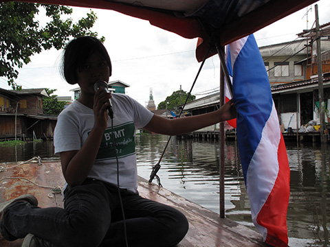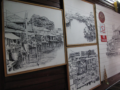 それらを眺めながら進んでいくと「20THB、ボートツアー」とスピーカーから繰り返し流している小さな船着き場があった。
