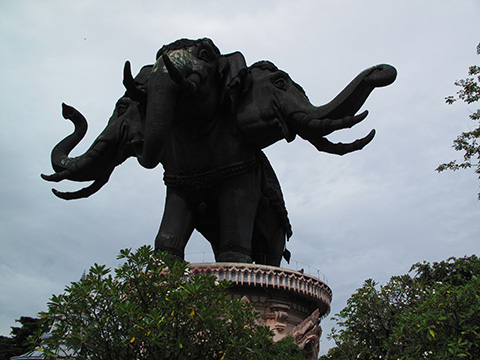 この付近を通ったことのある人ならだれでも知っているくらい、ここは3つの頭を持つ黒い巨大な象の像で有名なところ。