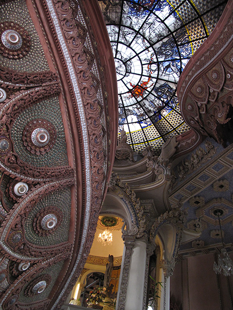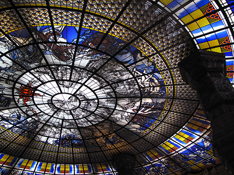 2階に入ってまず目に付くのは色とりどりな天井のガラス。