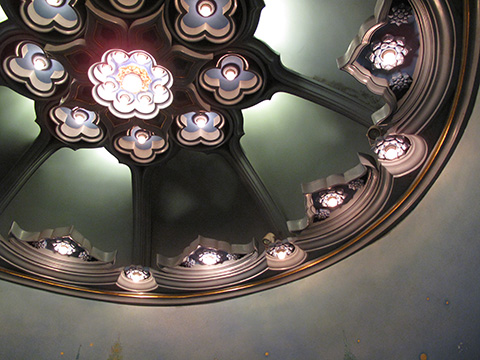 その天井を眺めながら周り階段を上っていくとそこにエレベーターがあった。
