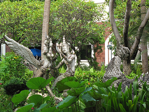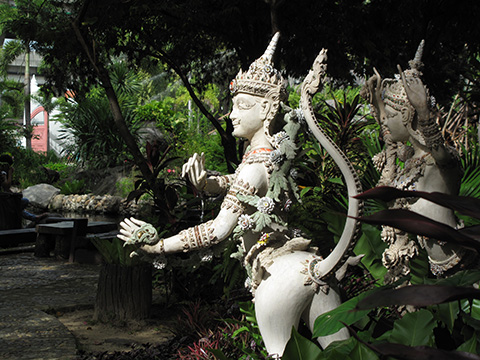 敷地内の庭園にはあちこちにヒンドゥーの神々がまつられている。