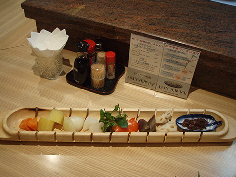 店内に入ると真新しい白木のカウンターが目を引くが普通のテーブルも有り家族連れでも入りやすそうだ。