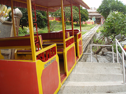 たしかカンチャナブリーの寺でもこんなケーブルカーを見かけたことがある。