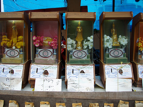 カンチャナブリーの寺では自動賽銭運搬機があって唖然としたが、この寺もちょっとハイテク寺。