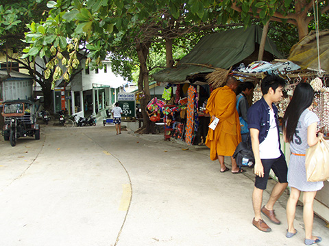 そのエリアは本土と橋で繋がってはいるものの寺を中心にしたゴ・ローイという小さな島になっていて土産物屋・軽食屋が20軒ほど集まっている。