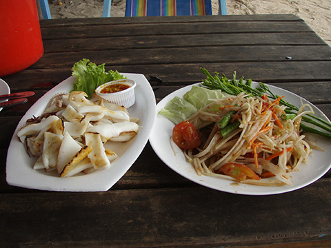 「じゃそれで。あとプラムック・ヤーン(イカの姿焼き)も」