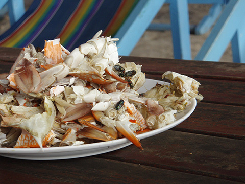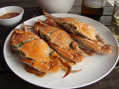 「プーマー・ヌゥン(蒸した渡り蟹)は1kgだとひとりでは多いですが0.5kgにしますか?」