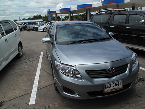 5935THB/3day | ![]() 1.6L(クラスC)を予約したら1.8L(クラスD)にアップグレードされた。 この車体で1.8Lにもなるとさすがにトルクに余裕があって追い越しも楽、シフトをDから右に動かして+・−で変速できるのも面白い。 フルカバーの保険は外したが前回同様200THB/dayでカーナビのオプションをつけた。 |